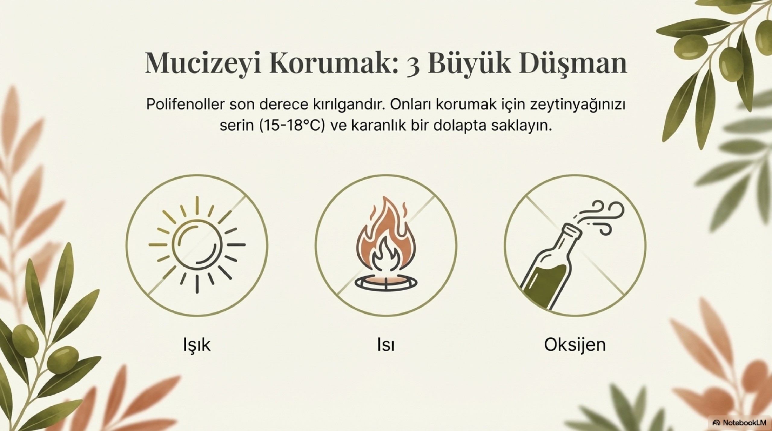 Saklama koşulları da hayati önem taşır. Polifenollerin 3 büyük düşmanı vardır: Işık, Isı ve Oksijen.